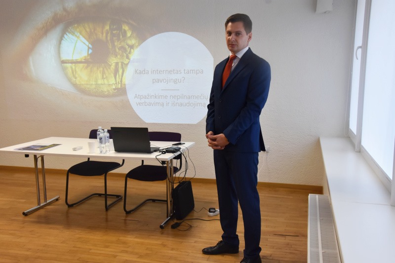 Seminaro lektorius, Lietuvos kriminalinės policijos biuro Sunkaus ir organizuoto nusikalstamumo tyrimo 5-osios valdybos 1-ojo skyriaus viršininkas Sergėjus Chaniutko kalbėjo apie piktnaudžiavimą technologijomis, pažinčių svetaines, skelbimų portalus, aptarti realūs darbo pasiūlymų pavyzdžiai, vaikų seksualinis išnaudojimas, prekyba žmonėmis, kalbėta apie keliaujančius vaikų seksualinius išnaudotojus, patyčias internete ir galimas prevencines priemones