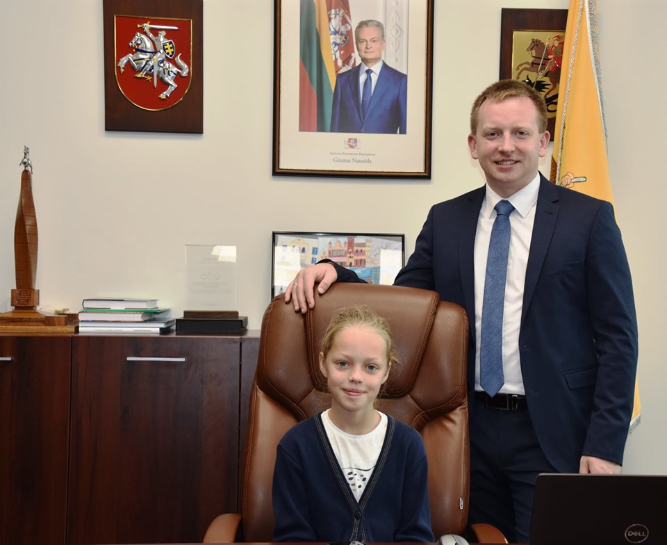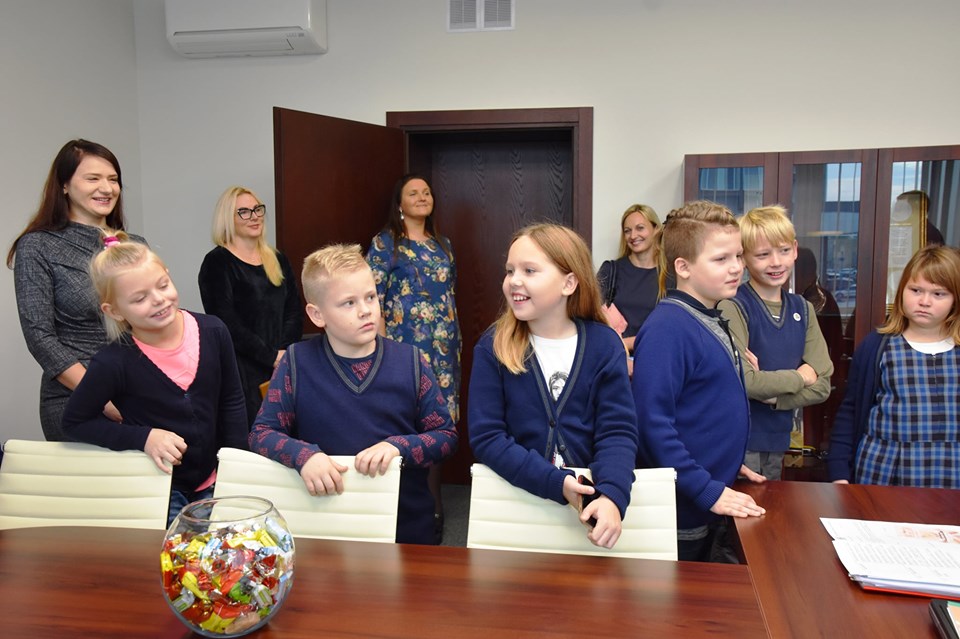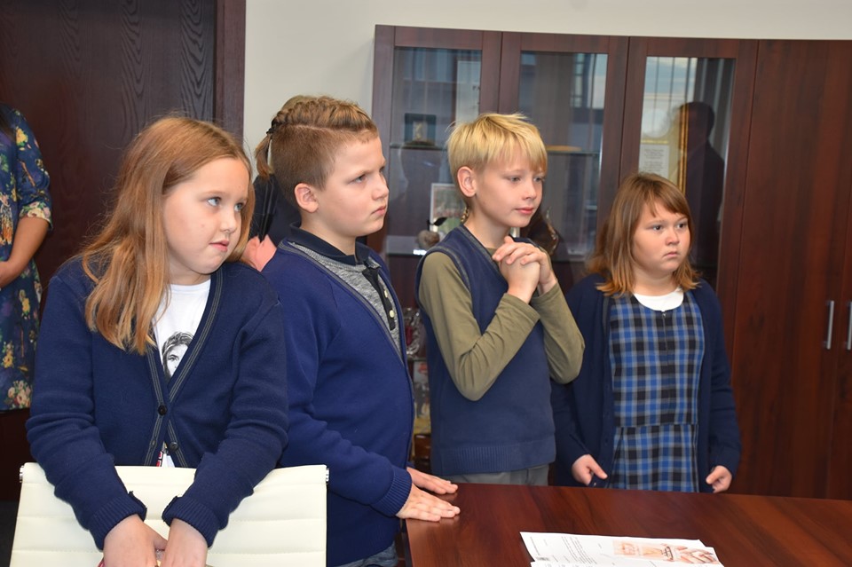 Meras vaikams papasakojo apie savivaldybės gautus apdovanojimus ir pakvietė apsilankyti mero kabinete. Klasės seniūnė Gitė ir Ignas „pasimatavo“ mero kėdę ir už drąsą sulaukė netikėtų mero dovanų.