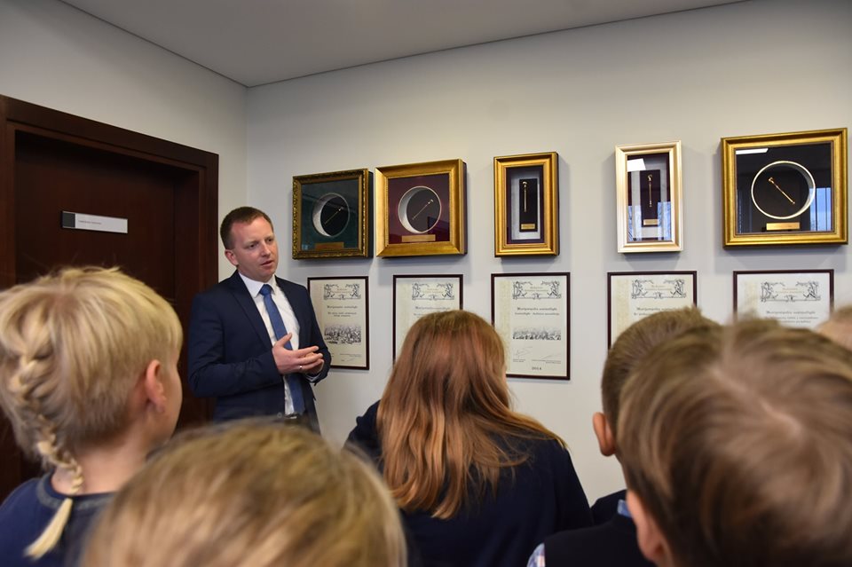 Mokiniai susidomėję apžiūrėjo ir susigiminiavusių miestų suvenyrų ekspoziciją, savivaldybės sportininkų iškovotų taurių ir kitų apdovanojimų stendą ir žadėjo dar apsilankyti, kad galėtų viską detaliau apžiūrėti.
